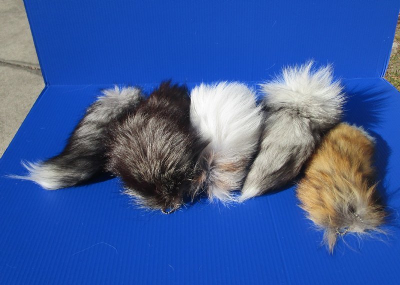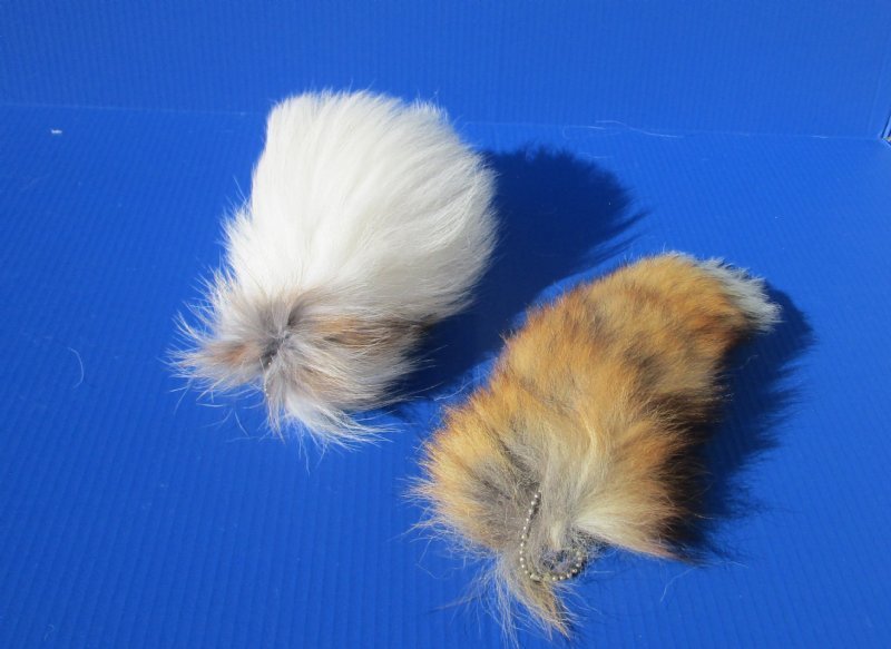 10 to 13 inches Assorted Tanned Fox Tail Key Chains Wholesale with Attached Ball Chain Clasp - Case of 12 @ $7.75 each