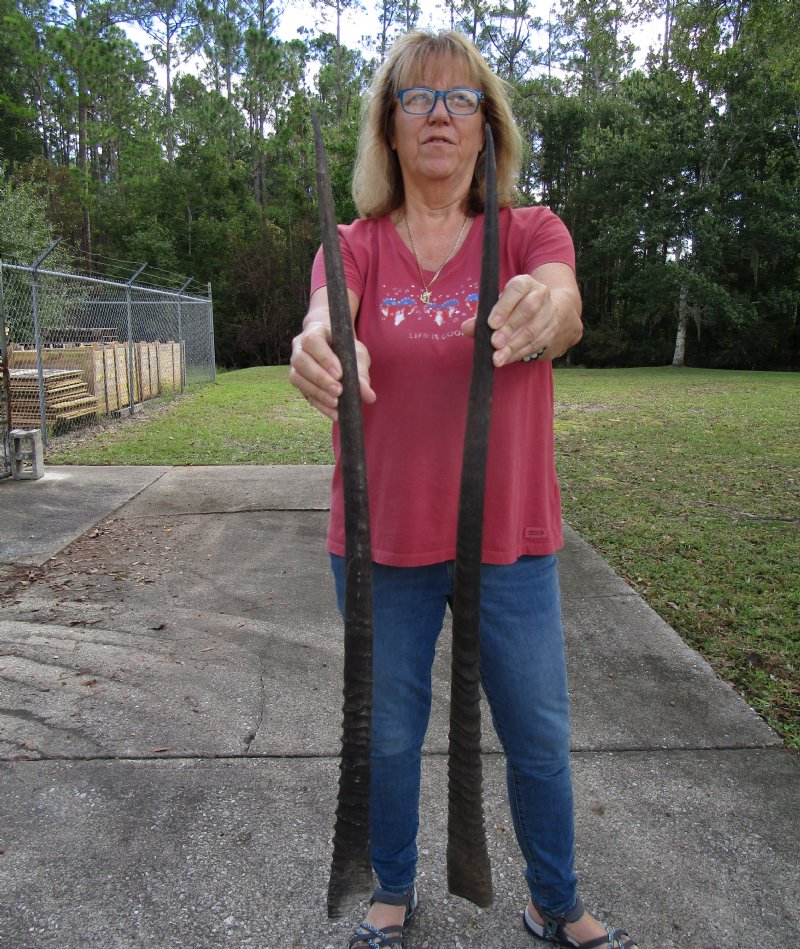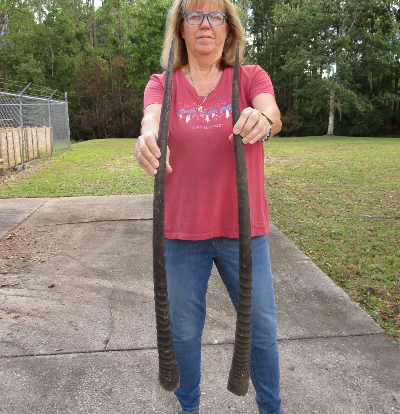 2 Large Gemsbok, Oryx Horns 33-3/4 and 33-1/4 inches for $33 each