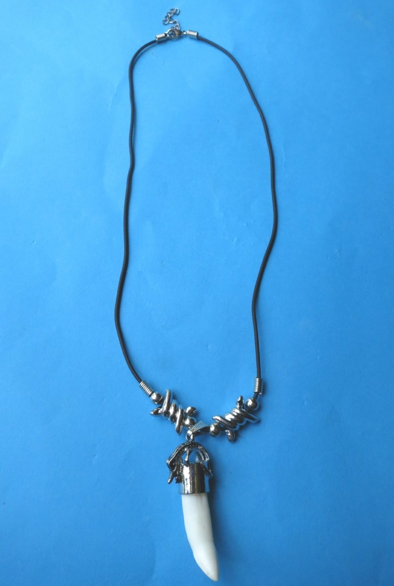 20 inches Real Alligator Tooth Necklace with 3/4 to 1-1/2 inches Gator Tooth and Twisted Silver Wire Beads - 3 @ $7.50 each