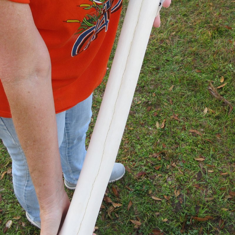 Real African Giraffe Metatarsal Leg Bone for Carving (Giraffa camelopardalis)  measuring approximately 24 inches long. This is a real giraffe metatarsal leg bone - NOT a Replica.   Has natural narrow cracks on both sides of the bone. Review all photos.  Giraffe leg bones are used for carving, scrimshaw art, making bone knife handles, and for numerous other craft projects.