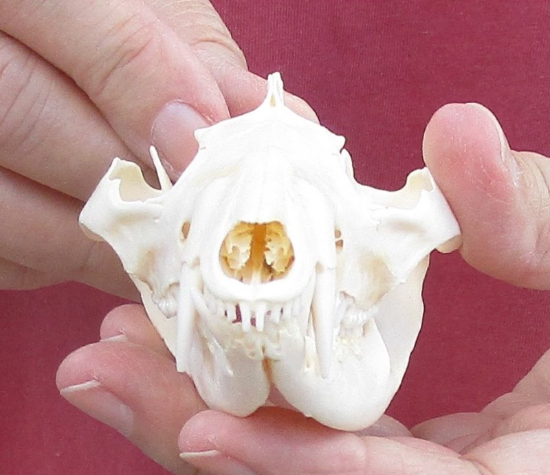 Real Possum Skull for Sale, American Opossum Skull, cleaned, whitened and ready for display.  This opossum skull measures approximately 4 inches long and 2-3/8 inches wide. It was ethically sourced from a licensed trapper and professionally cleaned and whitened.  It is a Real Opossum Skull - Not a Replica