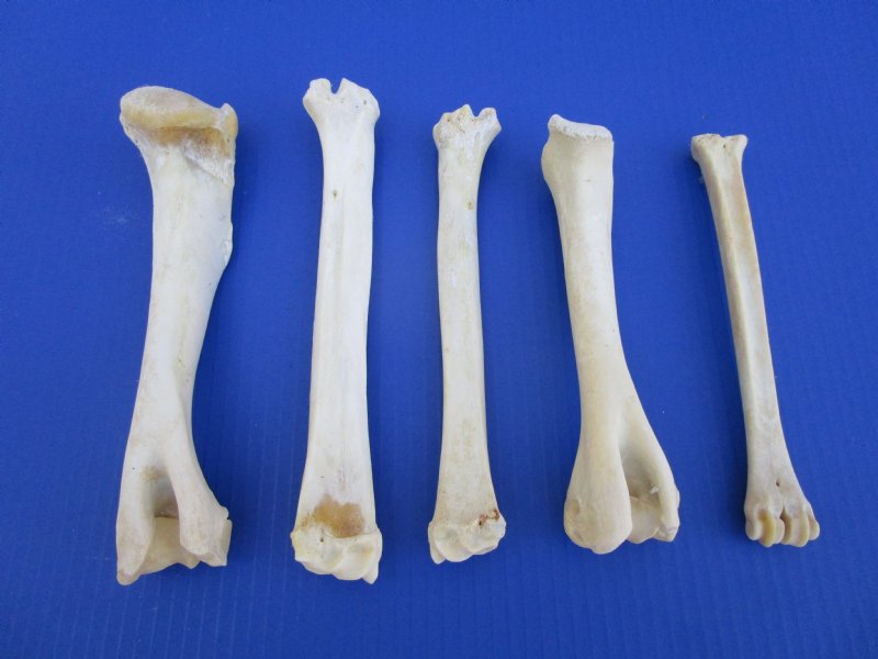 Five whitetail deer leg bones for taxidermy crafts.  These whitetail deer leg bones may include the femur, tibia, fibula and metatarsal and other leg bones and will measure between 7 inches and 9 inches long.  Our deer leg bones are Real - Not Replicas.  They have been cleaned; however, there may be some areas of discoloration, hardened cartilage on the bones and some may have some cuts, tiny holes and other blemishes