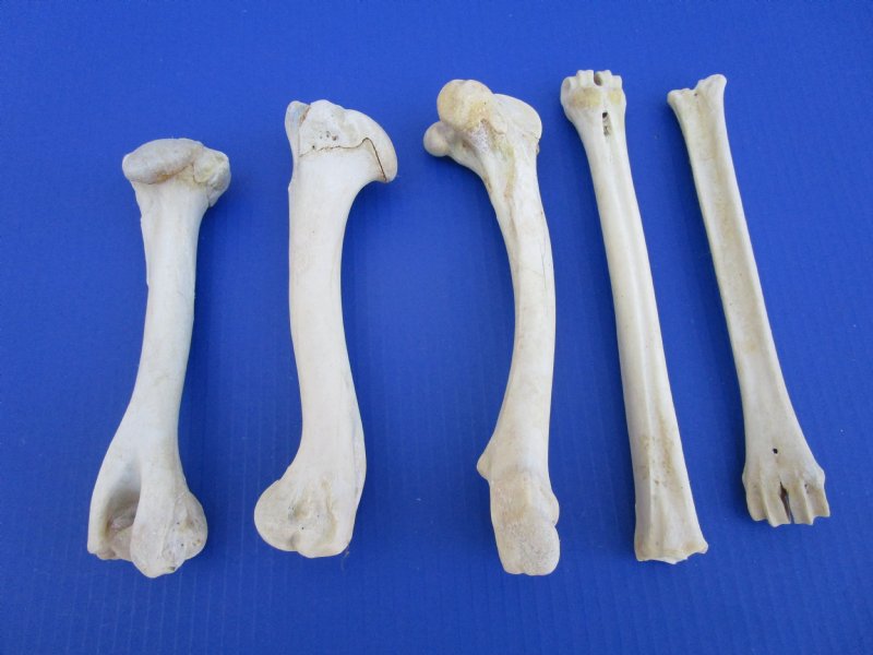Five whitetail deer leg bones for taxidermy crafts.  These whitetail deer leg bones may include the femur, tibia, fibula and metatarsal and other leg bones and will measure between 8 inches and 9-1/2 inches long.  Our deer leg bones are Real - Not Replicas.  They have been cleaned; however, there may be some areas of discoloration, hardened cartilage on the bones and some may have some cuts, tiny holes and other blemishes