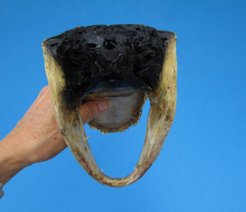American Alligator Head from a farmed Louisiana gator.   This alligator head measures approximately 8-3/4 inches long and 4-1/4 inches wide.  It is from an estimated 5-foot gator.  Our gator heads have clear or opaque glass eyes and the open backs of the heads have been painted black.  You are buying the one pictured.  Review all photos carefully.