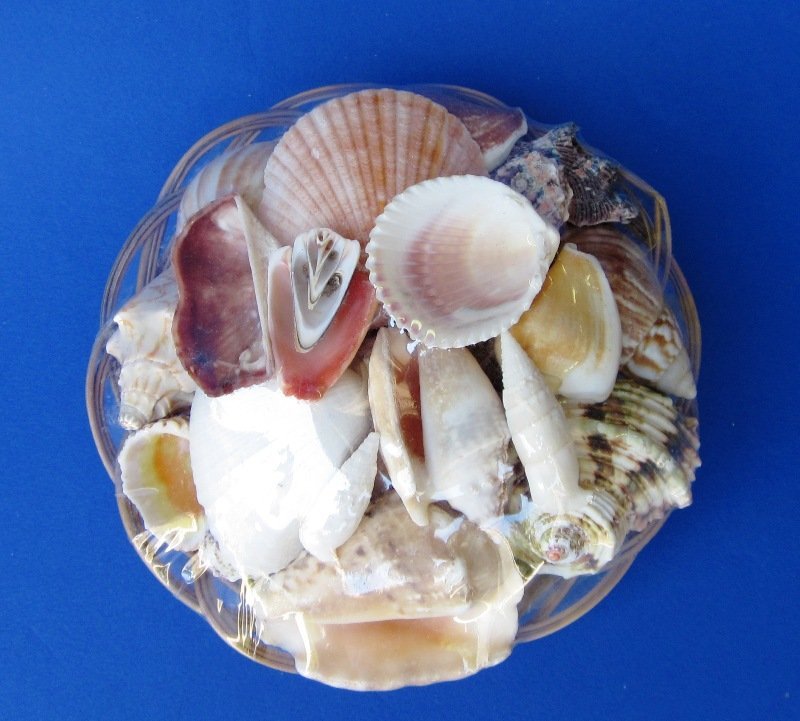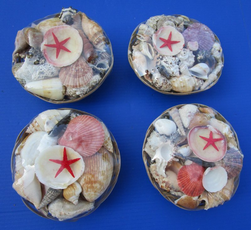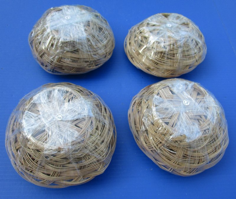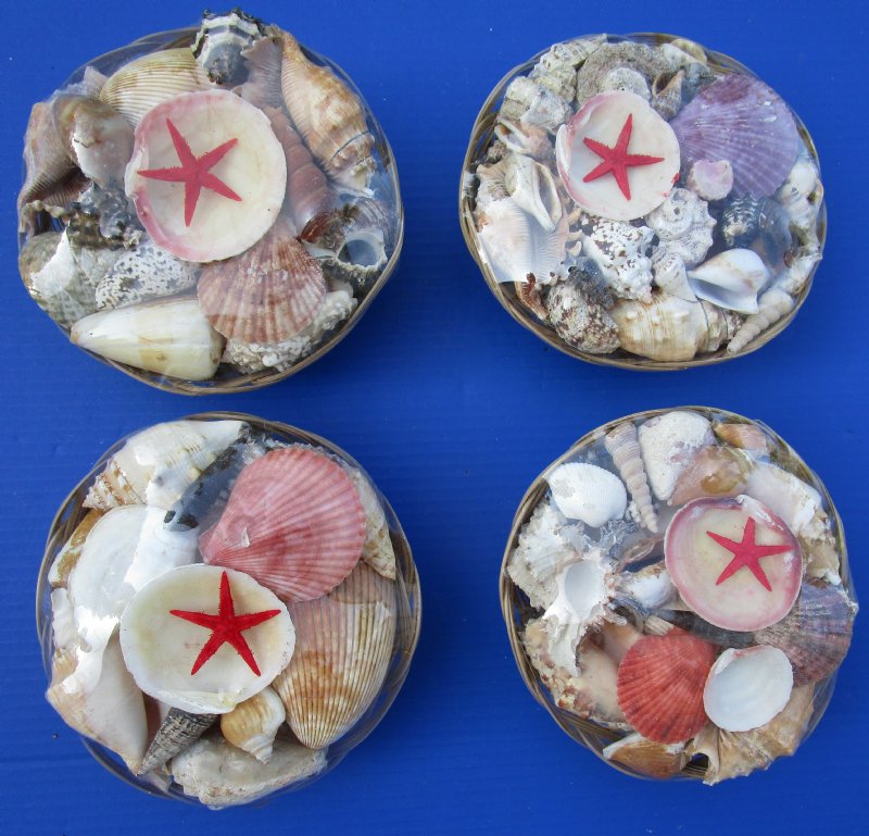 8 inches Round Rattan Basket of Seashells - 6 @ $2.80 each