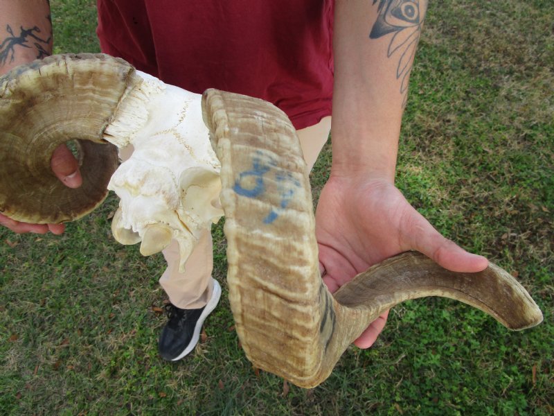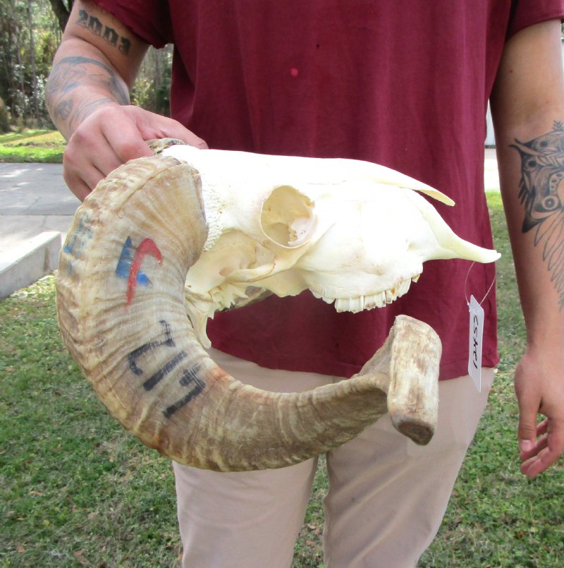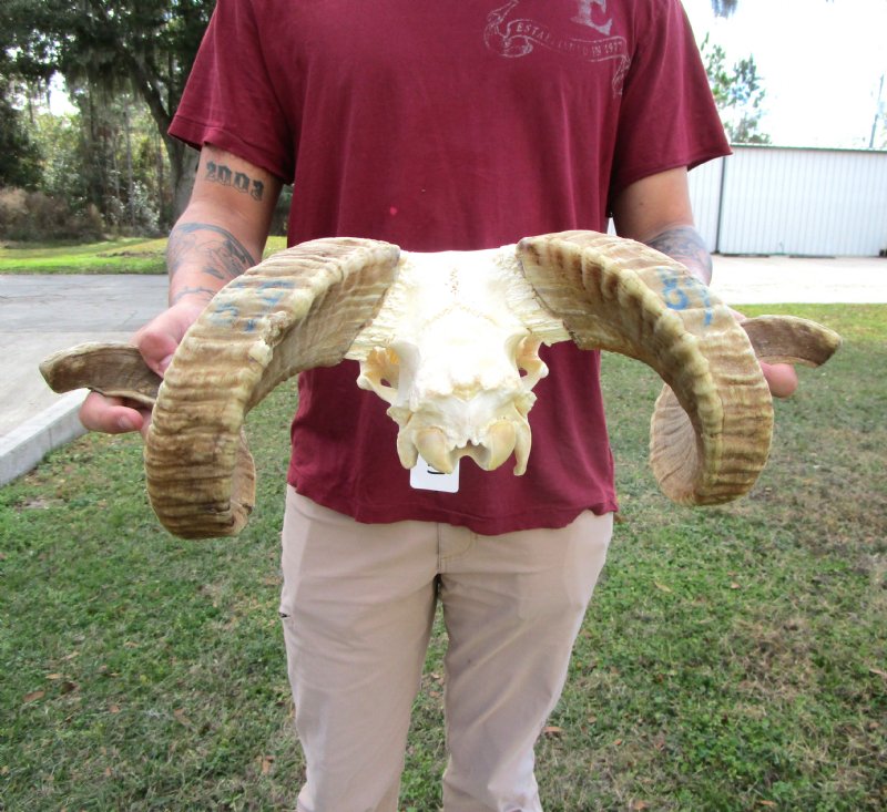 African Merino Ram Skull, Sheep Skull with 21-1/4 inches Horns - Discount Grade B for $124.99