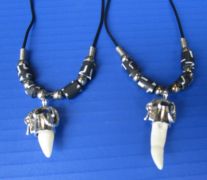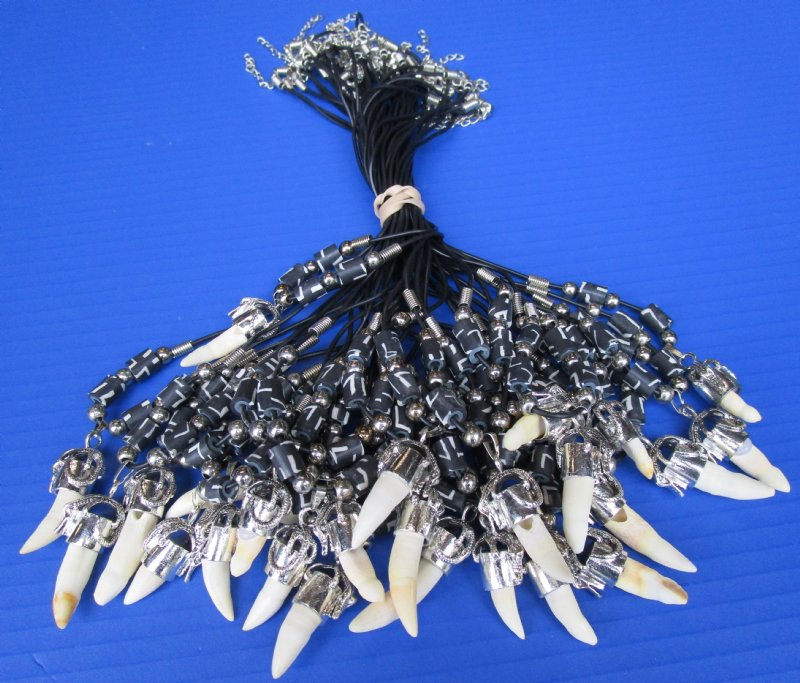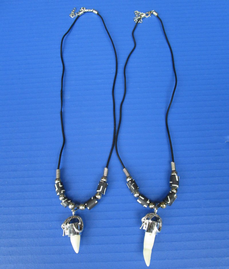 Alligator Tooth Necklaces <font color=red> Wholesale</font> with Black and White Tube Shaped Beads  - 24  $4.50 each