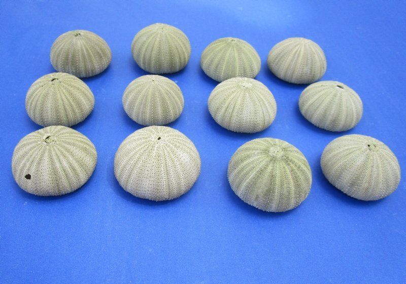 Dried Denuded Green Sea Urchin Shells for Crafts measuring between approximately 1-5/8 inches and 2-1/8 inches.  Use our Green Sea Urchin Shells for displaying air plants, creating sea urchin wreaths and mirrors and making sea urchin Christmas ornaments.  The green sea urchin, from the family Echinoidea, has spines that are light green, gray-green, or, more rarely, brownish or reddish-green.  The Green Sea Urchin can grow up to 3.25 inches in diameter and 1.5 inches in height having a low, flat profile.  Our green sea urchin shells are 100% Real - Not Replicas.  They will vary in coloring, size and shape.  They will have natural imperfections from living in the oceans. May have tiny holes in the urchin and the underside opening (hole) may vary in size.