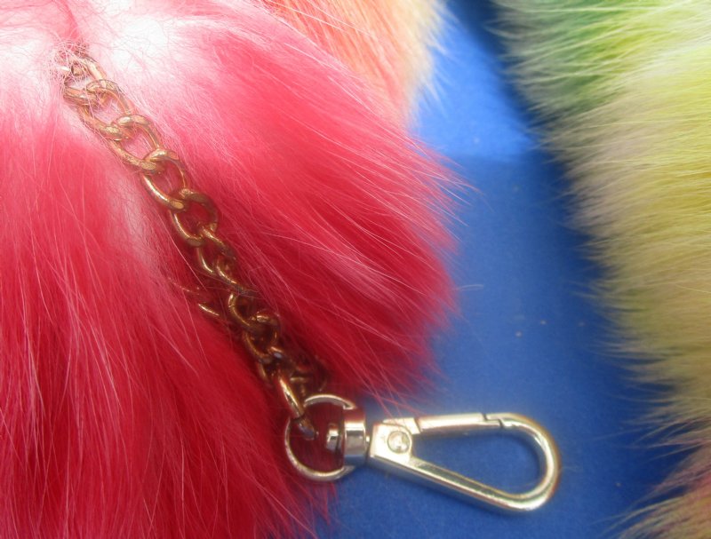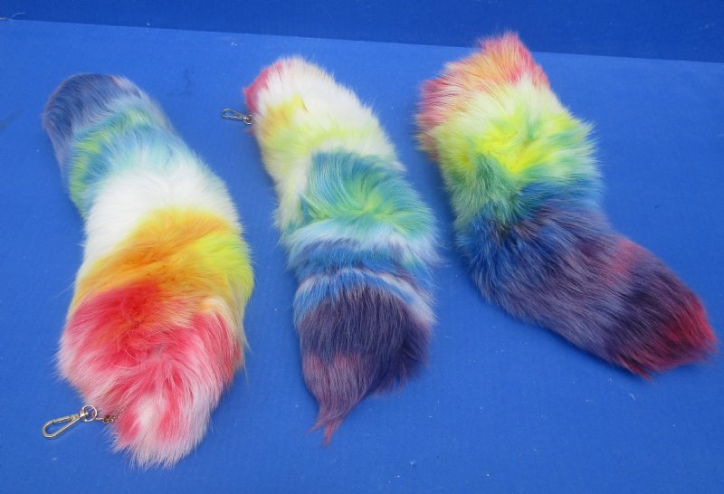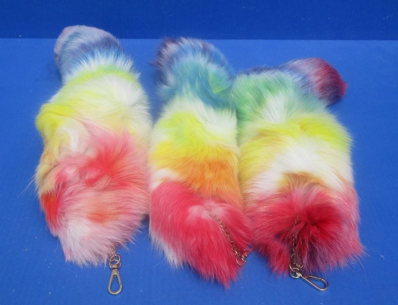 Dyed Rainbow Colored Fox Tail with Silver Colored Lobster Clasp Chain, 15 to 18 inches - $23.99 each