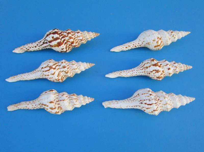 Fusinus Nicobaricus Spindle Shells for seashell crafts, a pretty white seashell with brown markings for making seashell Christmas ornaments and for placing in glass containers as seashell decor. Our fusinus nicrobaricus spindle shells will measure between approximatley 4 inches and 4-7/8 inches in size (some may be slightly smaller or larger). They are 100% real - not imitation and will have natural imperfections from living in the ocean and aging. Fusinus nicobaricus, common name : the Nicobar spindle, is a species of sea snail in the family Fasciolariidae, the spindle snails, the tulip snails and their allies.