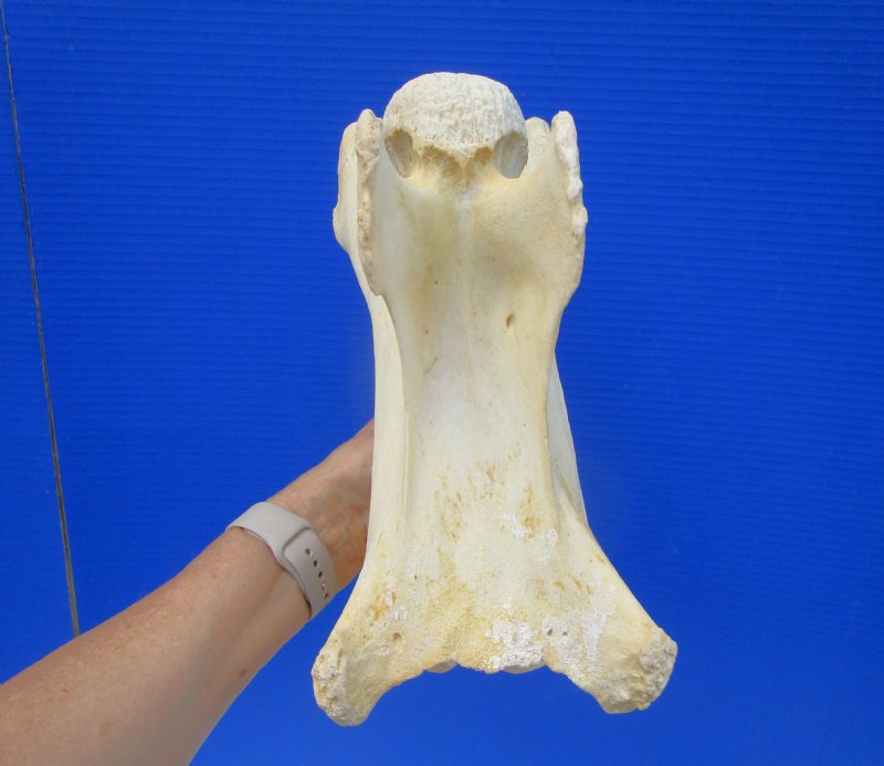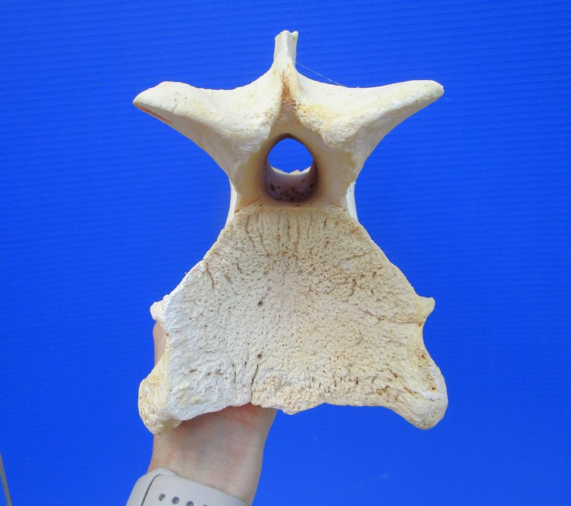 Genuine Giraffe Neck Vertebra Bone for Sale for bone collecting, carving bone and painting bone (Giraffa camelopardalis) measuring approximately 11-1/2 inches long and 5-1/2 inches wide and 7-3/4 inches high. Review all photos.   This giraffe vertebra bone is from a Real African Giraffe and will have natural imperfections.  It was imported from South Africa and cleared for legal entry into the US by the US Fish and Wildlife Service and US Customs.  This giraffe is NOT endangered.