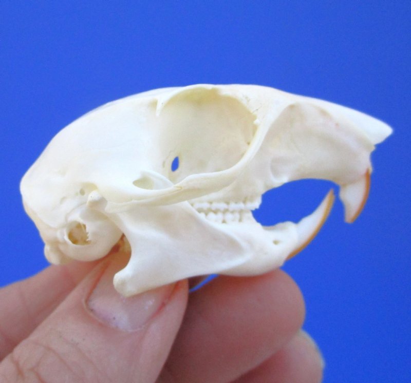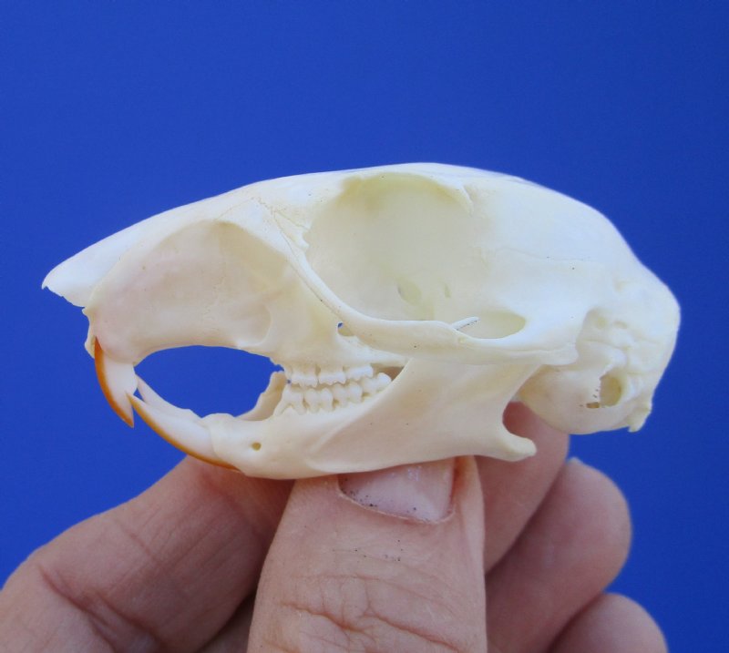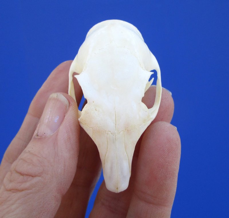 Gray Squirrel skull for sale, beetle cleaned and  whitened. (Sciurus cardinensis). This gray squirrel skulls measures approximately 2-1/8 inches long and 1-1/4 inches wide.