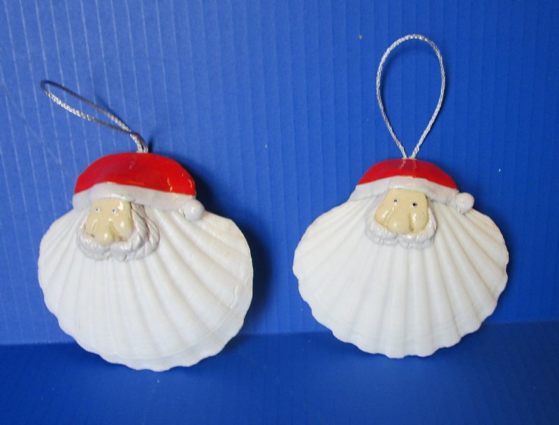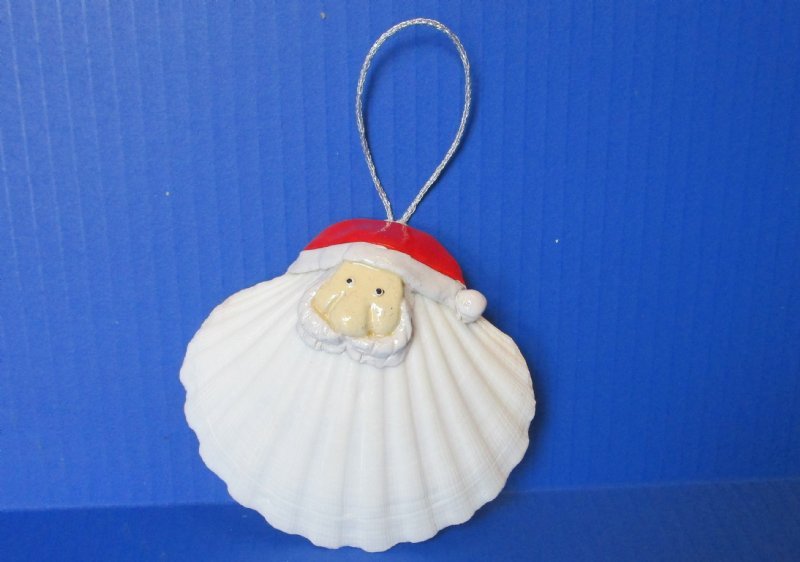Great Scallop Shell with Santa Face Ornaments Wholesale, 4 inches - 60 @ $1.70 each
