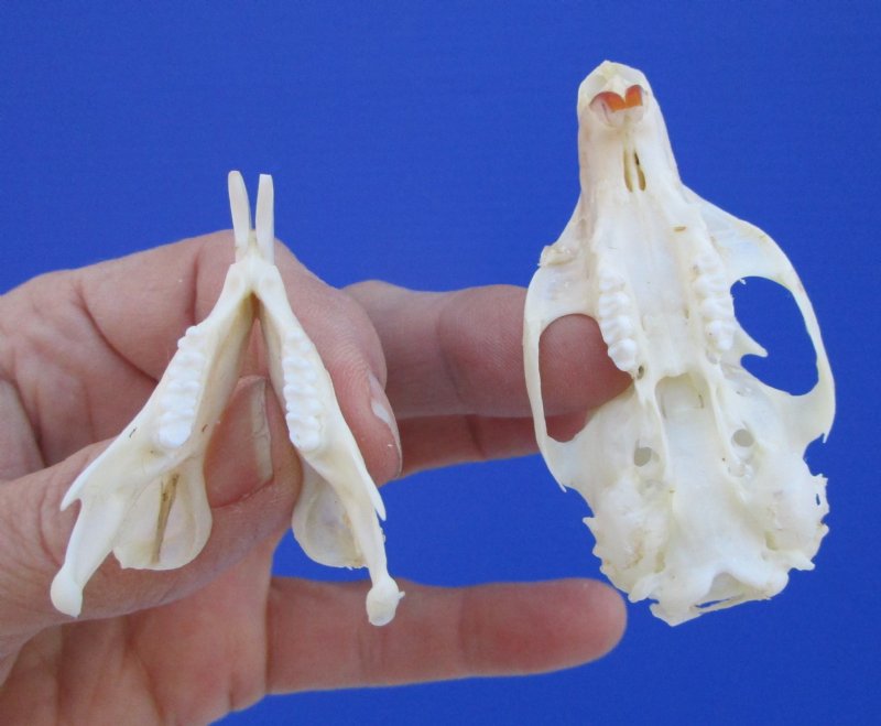 North American Gray Squirrel skull for sale, beetle cleaned and  whitened. (Sciurus cardinensis). This gray squirrel skulls measures approximately 2-7/8 inches long and 1-1/4 inches wide.