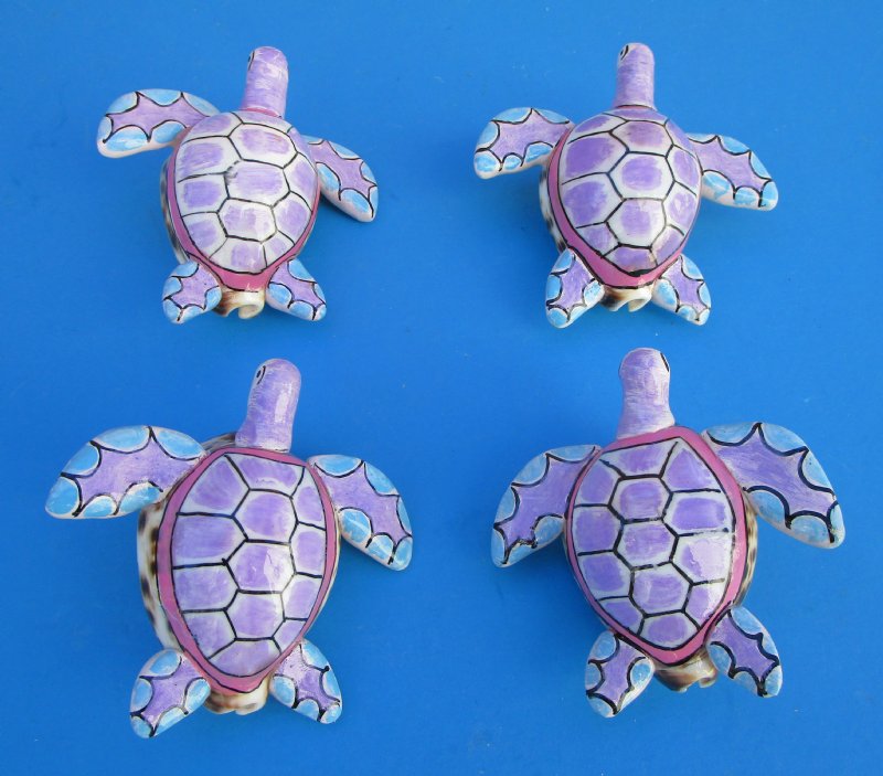 Painted Purple, Pink and Blue Tiger Cowrie Turtle Magnets Wholesale - 40 @ $2.35 each