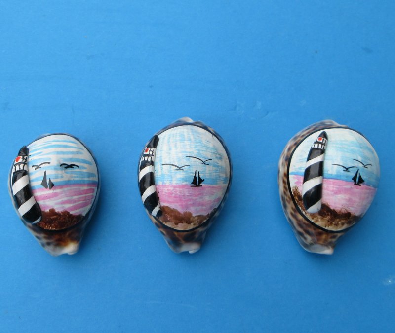Painted Tiger Cowrie Shell Magnets with 3d Lighthouse Wholesale - 70 @ $1.35 each