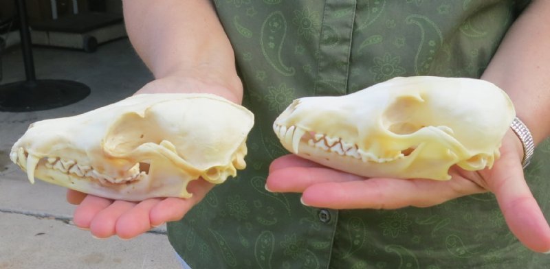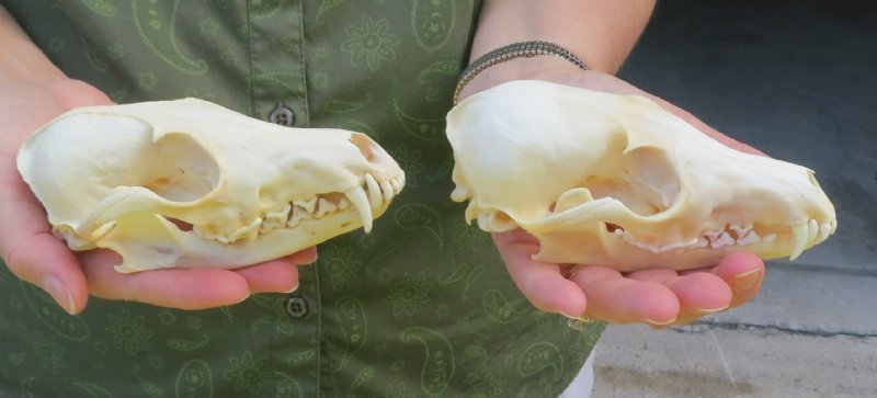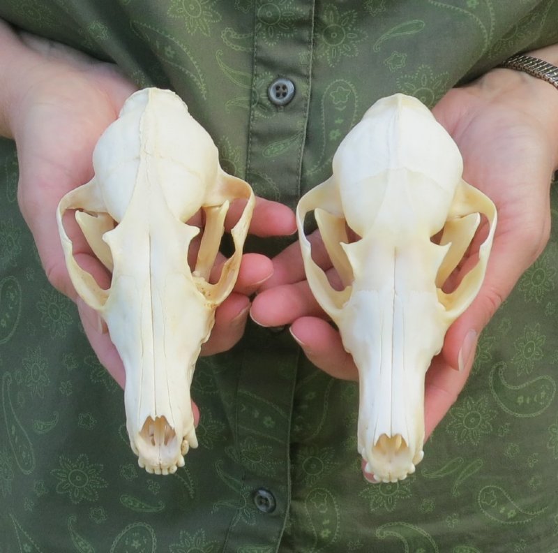 Wholesale Red Fox Skulls, beetle cleaned and whitened, measuring between 5 and 6 inches long sourced from licensed US trappers. Our red fox skulls, sold in bulk, have been cleaned and some will have their jaws are glued shut with hot melt glue. Our fox skulls are Real - NOT Replicas.