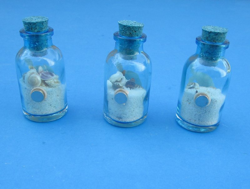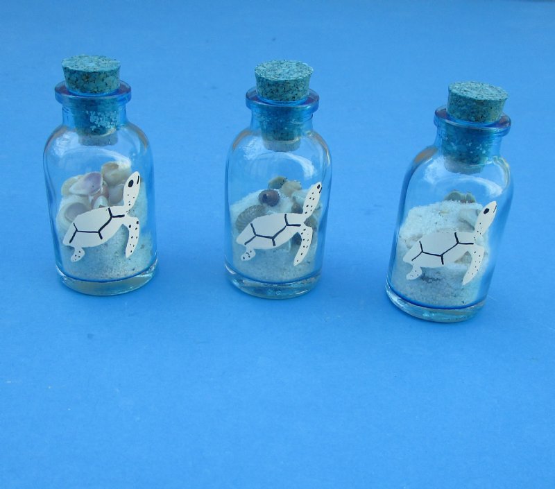 Tiny Souvenir Bottles of Sand and Shells with Turtle Decal Wholesale 2 by 1 inch - 125 (5 boxes) @ .80 each