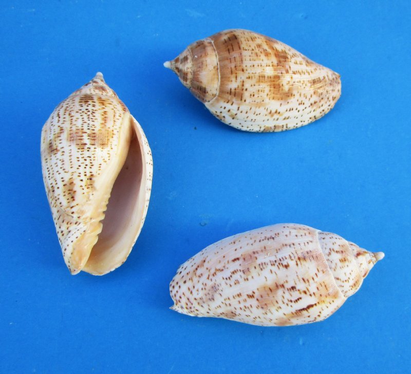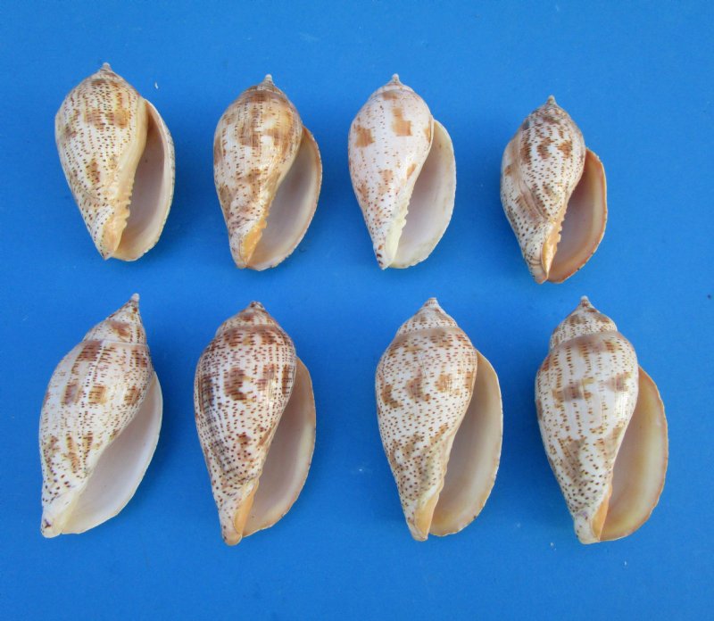 Voluta Lapponica shells, also known as Harulina lapponica for hermit crab changing shells and a colorful shell prized by shell collectors for its markings. Harpulina lapponica or Voluta Lapponica, is a species of sea snail in the family Volutidae, the volutes and found in the Indian Ocean. The exterior of the voluta lapponica shell is peach colored to tan with numerous vertical rows of dark brown patches. They measure between approximately 3 inches to 3-1/2 inches in size. Some may be a little under or over the size. They make a pretty focal point when placed in a glass container.