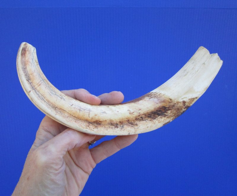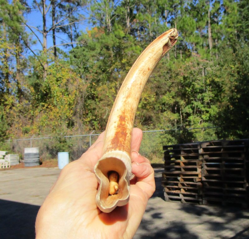 12-1/4 inches Huge African Warthog Tusk for Sale for carving ivory, Knife Handle Material,  measured around the curve of the tusk using a cloth tape measure. The warthog tusk weighs approximately 10 ounces and is approximately 10 inches solid. Warthog ivory is used as knife handle material, in jewelry making,  scrimshaw art and for carving ivory.  This is a Real warthog tusk - Not Imitation.  They will have natural imperfections.  Review all photos carefully. You are buying this one. This warthog tusk was cleared for legal entry into the US by the US Fish and Wildlife and US Customs.