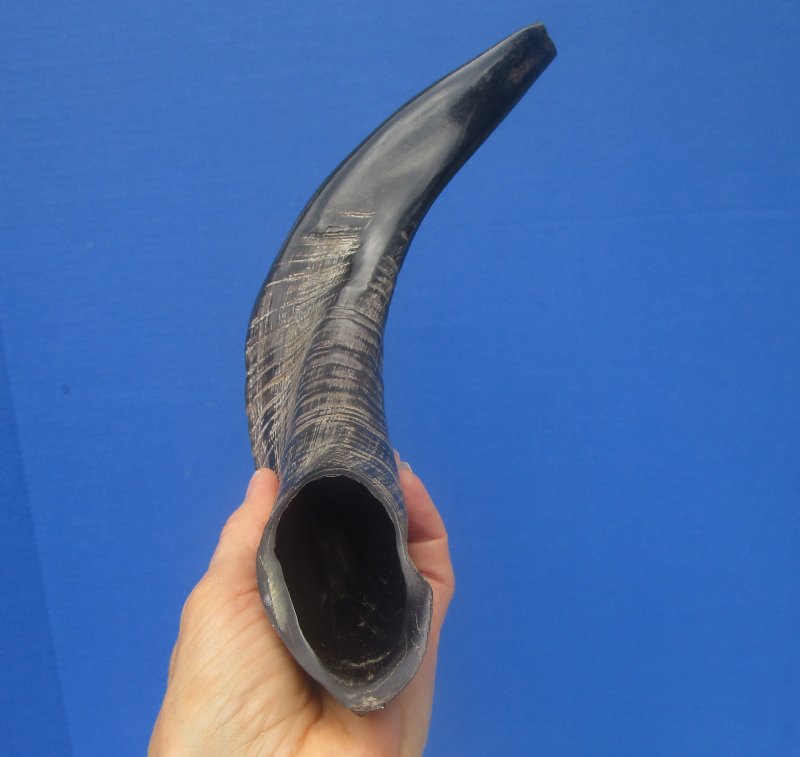 Polished Rams Horn Shofar, Sheep Horn Shofar or Viking War Horn, Blowing Horn with a light shine.  This Polished Rams Horn Shofar, Polished Sheep Horn Shofar measures approximately 13-1/2 inches, measured along the curve of the horn.  It has a hole cut in the tip of the horn and the mouth of the horn has been cut flat. The rough outer layer has been sanded smooth and it has been polished to a shine.   This shofar or war horn is made out of a Real Ram/Sheep Horn.  It is NOT a Replica.  It will have natural imperfections.