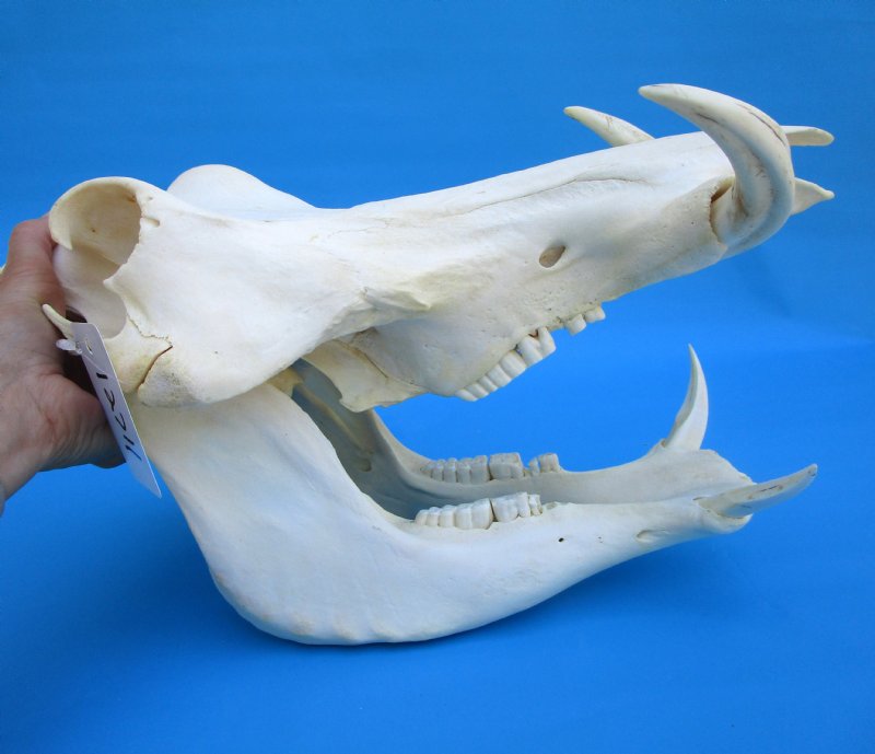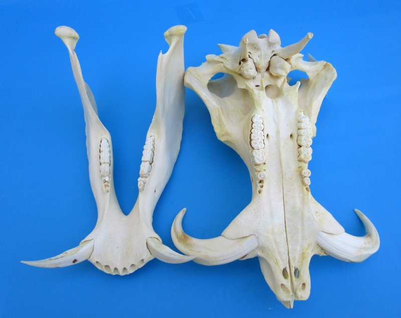 This skull is a Real Warthog Skull - Not a Replica.  It is from a wild warthog and will have natural imperfections -- missing teeth, cuts, etc., This skull was imported from South Africa and cleared for legal entry into the United States by the U.S. Customs Department and U.S. Fish and Wildlife Department.
