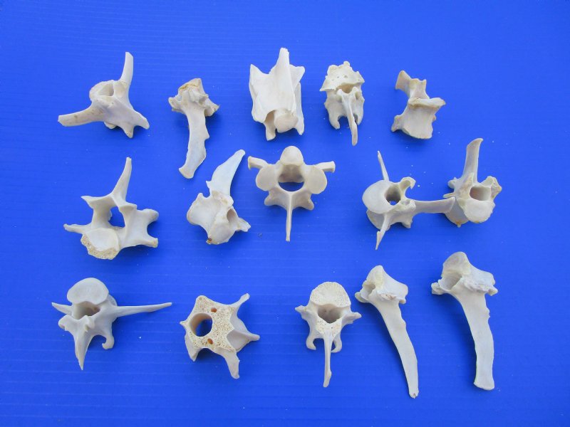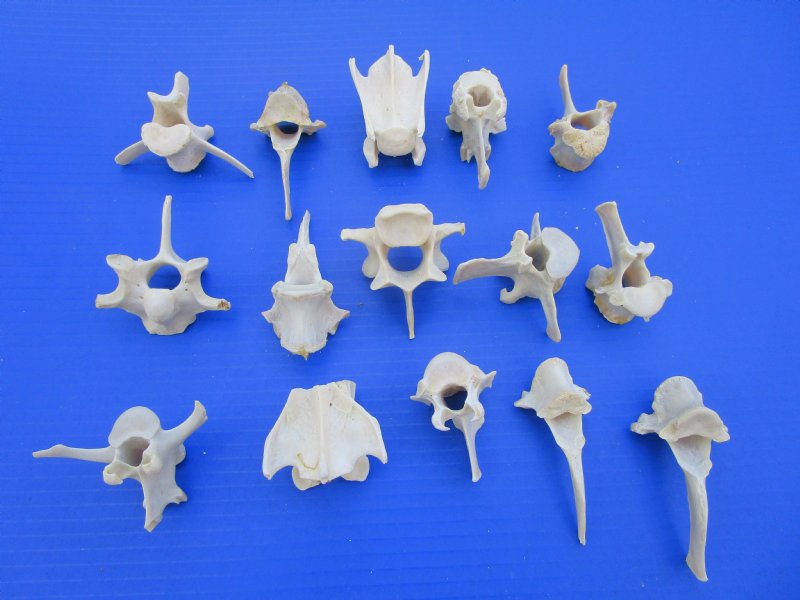 15 Real Wild Boar, Hog, Pig, Deer Vertebrae Bones measuring 2 to 3-1/2 inches (some may be little over), (Some have visible dried cartilage on the vertebrae and some staining).  Wild boar vertebrae bones are used in all types of bone crafts including making bone jewelry, bone art and bone painting.