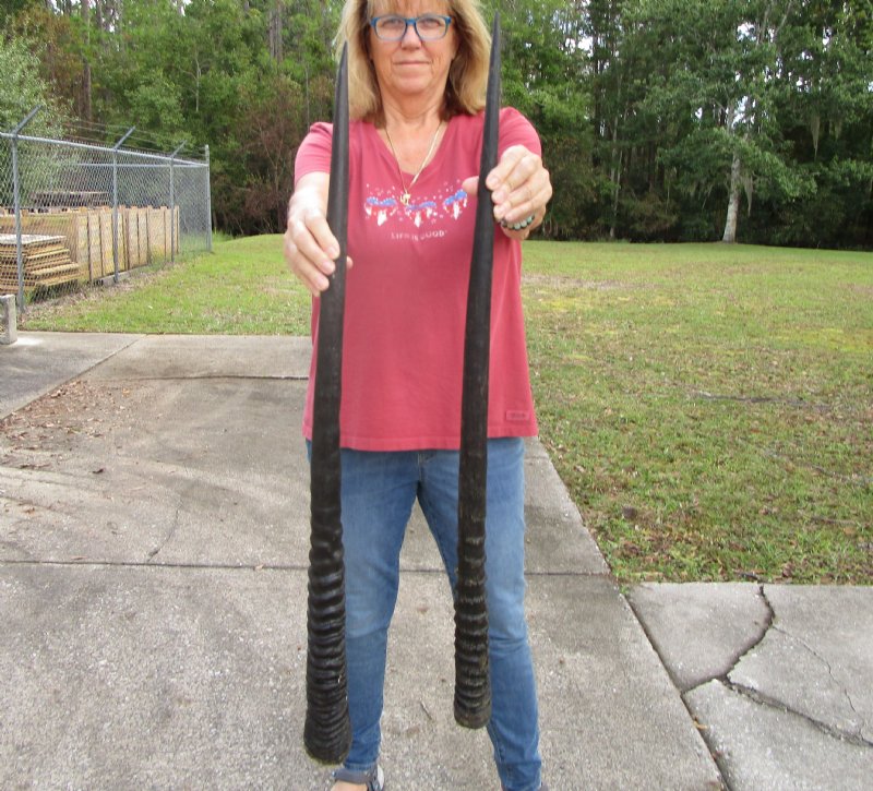 2 Large Gemsbok, Oryx Horns 34-3/4 and 35-1/4 inches for $33 each