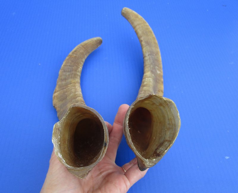 2 Raw African Goat Horns, 16-1/4 and 18 inches (1 right, 1 l left) for $14.00 each
