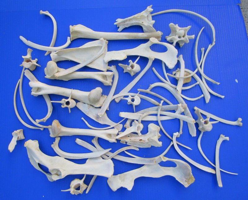 3.5 pounds of Assorted Animal Bones of Wild Boar, Alligator, and Whitetail Deer.   The assorted wild animal bones are from deer and wild boar.   The assortment may include shoulder blade bones, leg bones, vertebrae, pelvis bones, rib bones joint bones and others and measure between 2-1/2 inch and 10-3/4 inches.  Some may be a bit larger.  They have been cleaned and whitened; however, some may still have some stains and a little dried cartilage.  The assortment of bones will vary from box to box.