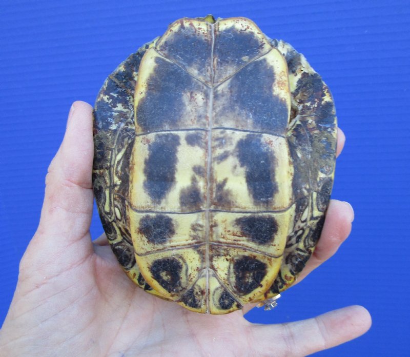 One Red Eared Slider Turtle Shell measuring approximately 4-1/2 inches long and 3-3/4 inches wide.  This is an empty real red eared slider turtle shell - not a replica.  It will have natural imperfections from aging and living in the river. The shell has been cleaned (although it may have a little algae on it) It is ready for use in crafts or as part of a collection.  Turtle shells are used in Native American crafts.  Some turtles have a darker pattern and others have a lighter color.