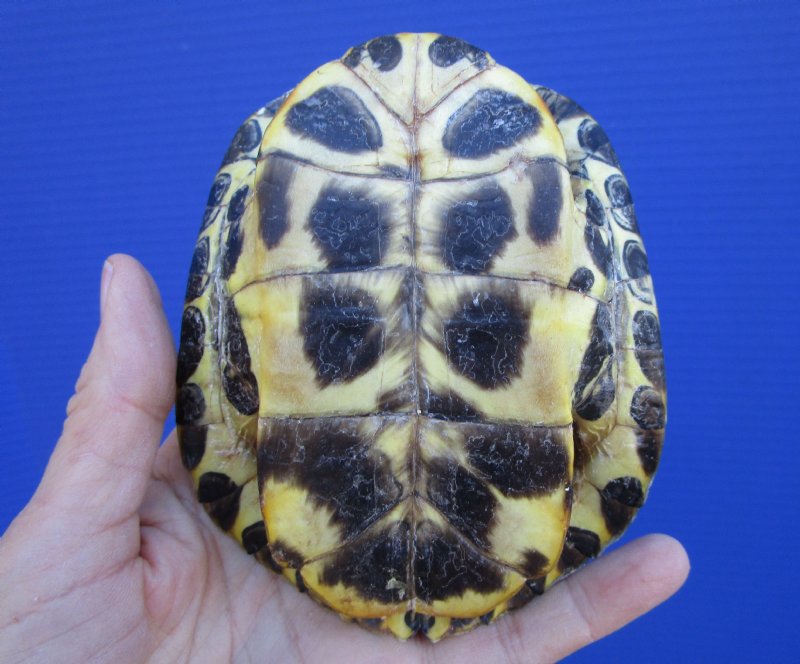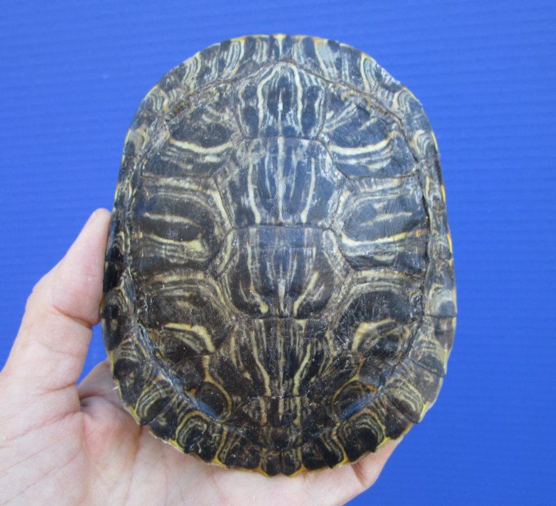 One Red Eared Slider Turtle Shell measuring approximately 4-3/4 inches long and 3-7/8 inches wide.  This is an empty real red eared slider turtle shell - not a replica.  It will have natural imperfections from aging and living in the river. The shell has been cleaned (although it may have a little algae on it) It is ready for use in crafts or as part of a collection.  Turtle shells are used in Native American crafts.  Some turtles have a darker pattern and others have a lighter color.