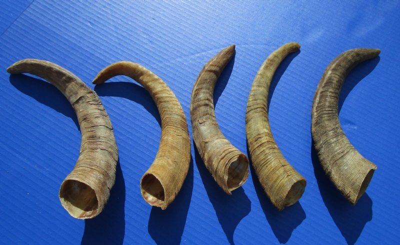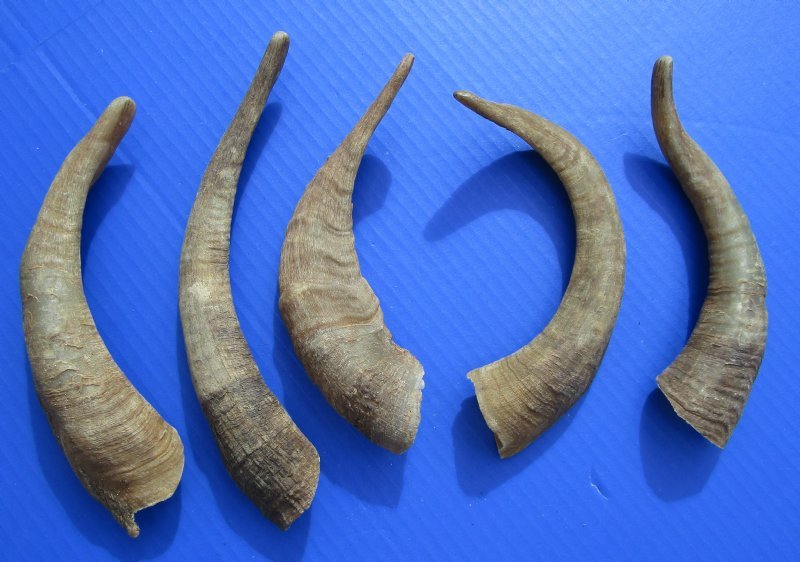 Natural Goat Horns for Sale, imported from Africa measuring between approximately 6 and 10 inches in size measured around the curve of the horn - not straight. Natural Goat Horns are used for creating furniture legs, lamps, sconces, knife handles, blowing horns, cane handles, inlaid crafts and numerous other taxidermy crafts. Our natura goat horns are a by-product of the farming industry and Government culling programs. The goat horns have been cleared for entry into the United States by the U.S. Fish and Wildlife Service and U.S. Customs.