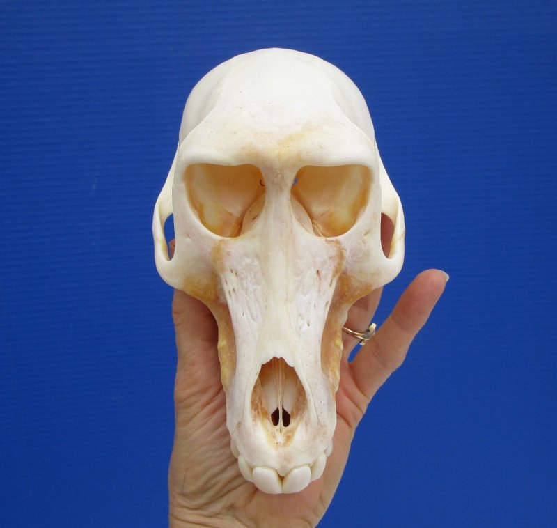 This female African chacma baboon skull was imported from South Africa and was professionally cleaned.  It has been cleared by the U.S Fish and Wildlife Services and U.S Customs Services for legal entry into the United States.