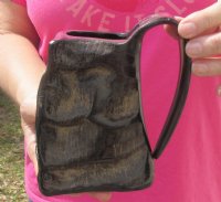 Wholesale Viking Horn Mugs in bulk, semi-polished made out of water buffalo horns and having natural horn ridges. Our Viking horn mugs made out of Asian water buffalo horns measure between approximately 5 inches and 5-7/8 inches tall,
