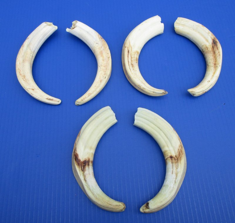 9 to 9-7/8 inches Matching Pairs of Large African Warthog Ivory Tusks <font color=red> Wholesale</font> - 2 @ $55 a pair; 4 @ $49 a pairs