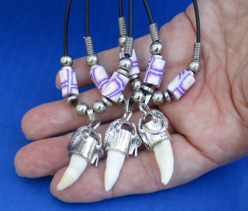Alligator Tooth Necklaces Wholesale with Pink, White, Purple Abstract Art Beads with 1/2 to 1-1/2 inches Gator Tooth, 20 inches - 24 @ $4.50 each