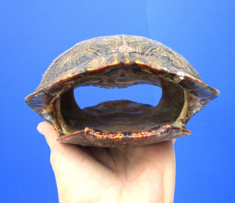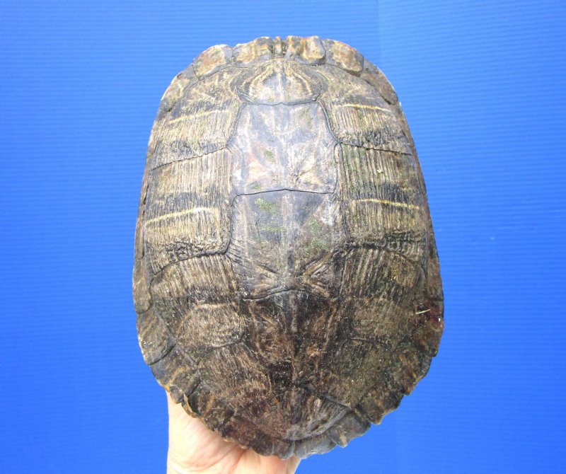 One empty Red Eared Slider Turtle Shell measuring approximately 8-3/4 inches long and 6-1/2 inches wide.  This is an empty real red eared slider turtle shell - not a replica.  It will have natural imperfections from aging and living in the river. The shell has been cleaned (although it may have a little algae on it) It is ready for use in crafts or as part of a collection.  Turtle shells are used in Native American crafts.  Some turtles have a darker pattern and others have a lighter color.