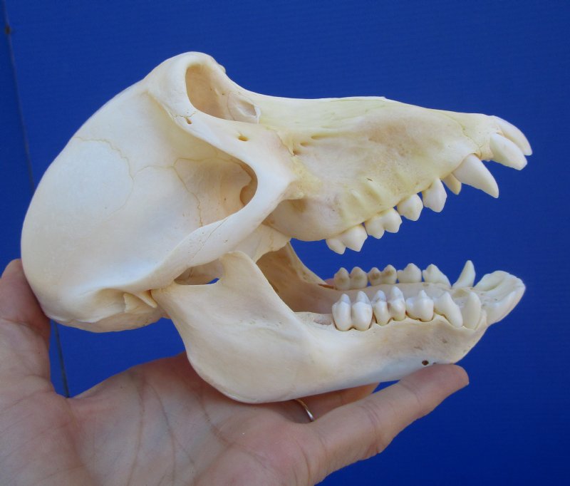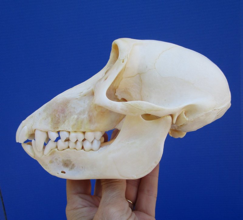 This female African chacma baboon skull was imported from South Africa and was professionally cleaned.  It has been cleared by the U.S Fish and Wildlife Services and U.S Customs Services for legal entry into the United States.