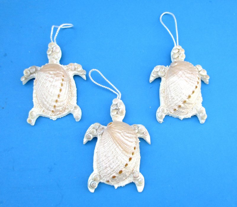 Pearl Abalone Shell Turtle Beach Christmas Ornaments, 4 by 2-3/4 inches - 10 @ $2.60 each