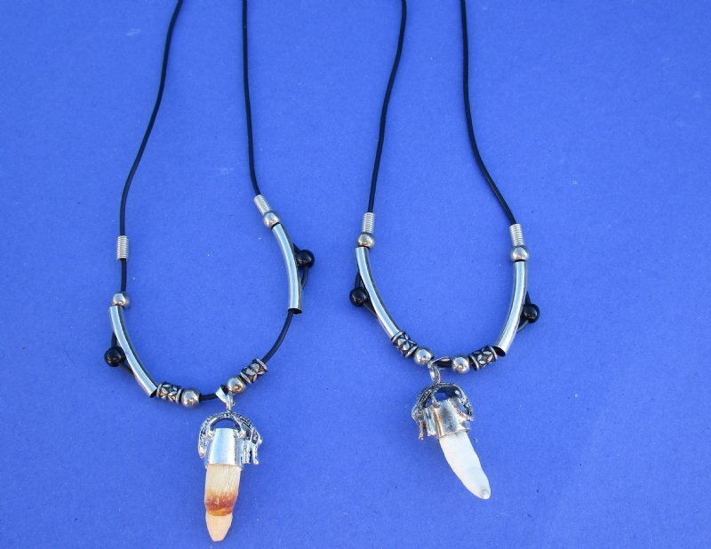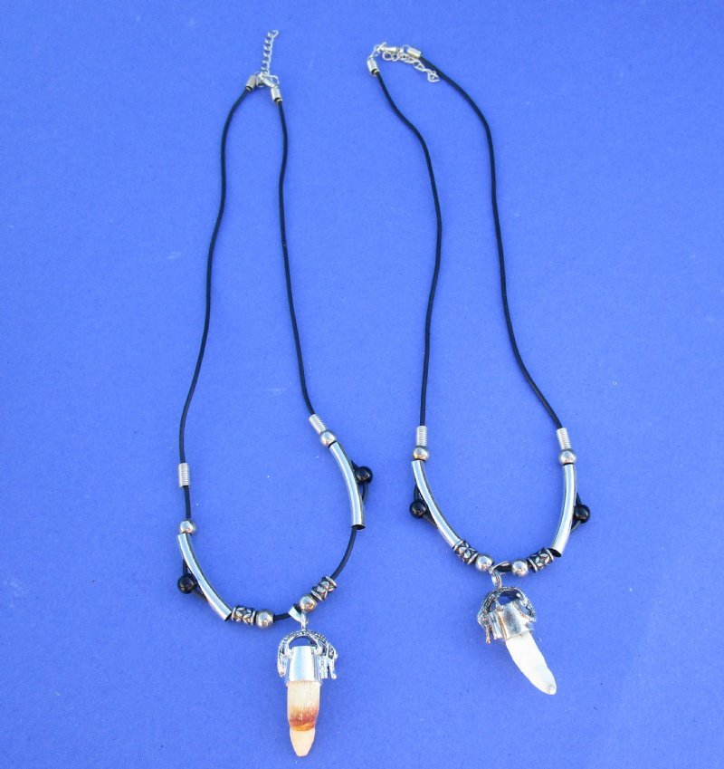 Real Alligator Tooth Necklaces Wholesale with Silver and Black Beads, 20 inches - 24 @ $4.50 each