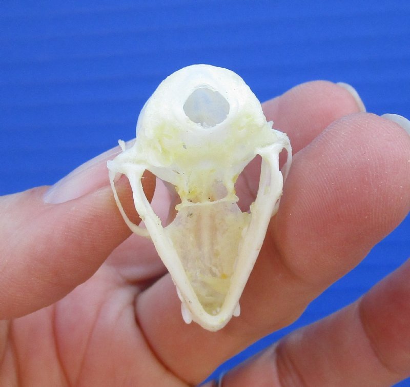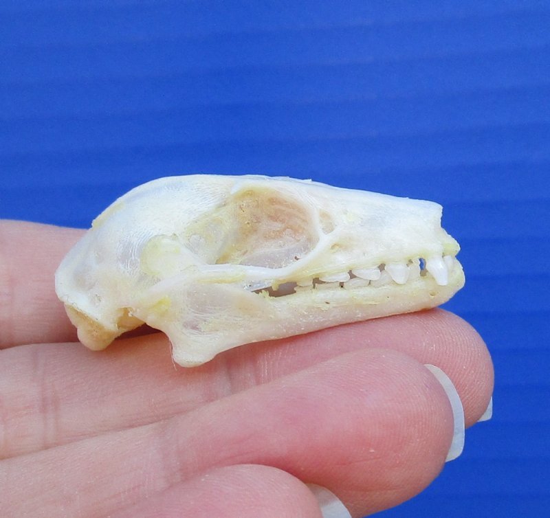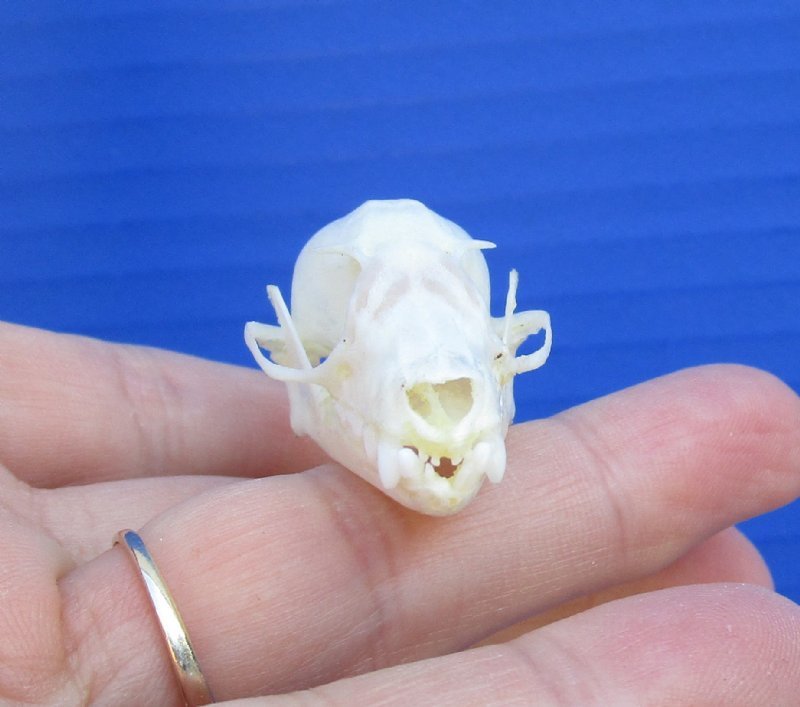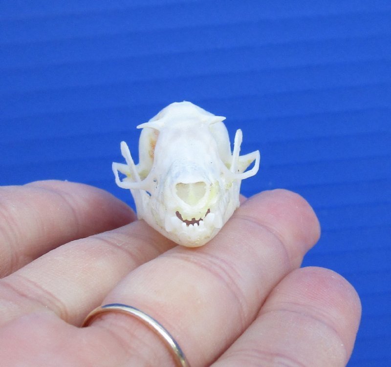Real Fruit Bat Skulls for Sale (Rousettus Leschenaulti) measuring approximately 1-1/2 inches up to 1-3/4 inches long. No 2 fruit bat skulls will be identical. These fruit bat skulls were cleaned and whitened in Indonesia.  They were cleared by the US Fish and wildlife and US Customs for legal entry into the US. They will vary in length and width