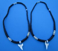 Two Black Coconut Beads Necklaces with 1-1/8 Modern Day Mako Shark Teeth Pendants 18 inches for $8.00 each