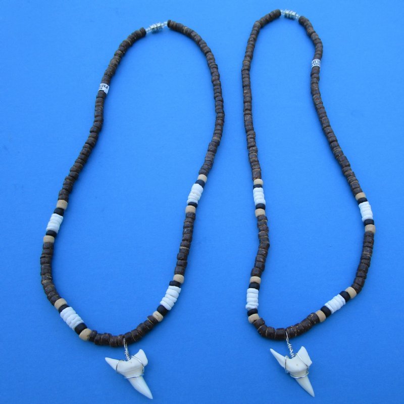 Two Brown Coconut 18 inches Necklace with 1 inch and 1-1/8 inches Shortfin Mako Shark Tooth Pendants - Buy these 2 for $8.00 each