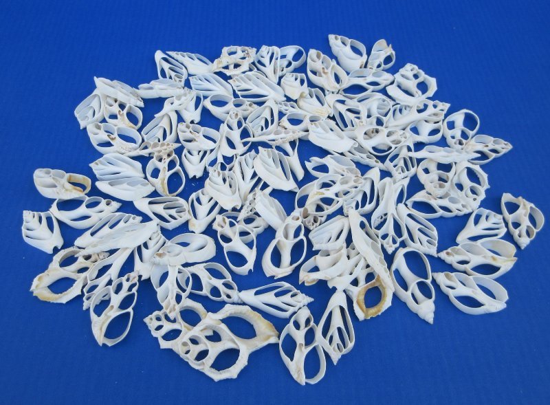 White Assorted Center Cut shells or assorted sliced shells, 2 to 3 inches in size. Some will have sections of natural color.  The assortment of white center cut seashell, or sliced shells may include sliced telescorpium augers, cut cerithiums, cut spindles, center sliced conchs, turris, cut bursa rana, cut murex and others.  The assortment will vary from bag to bag.  These are all Real seashells - NOT Replicas. They will have natural imperfections. Some shells may have chipped or broken tips.